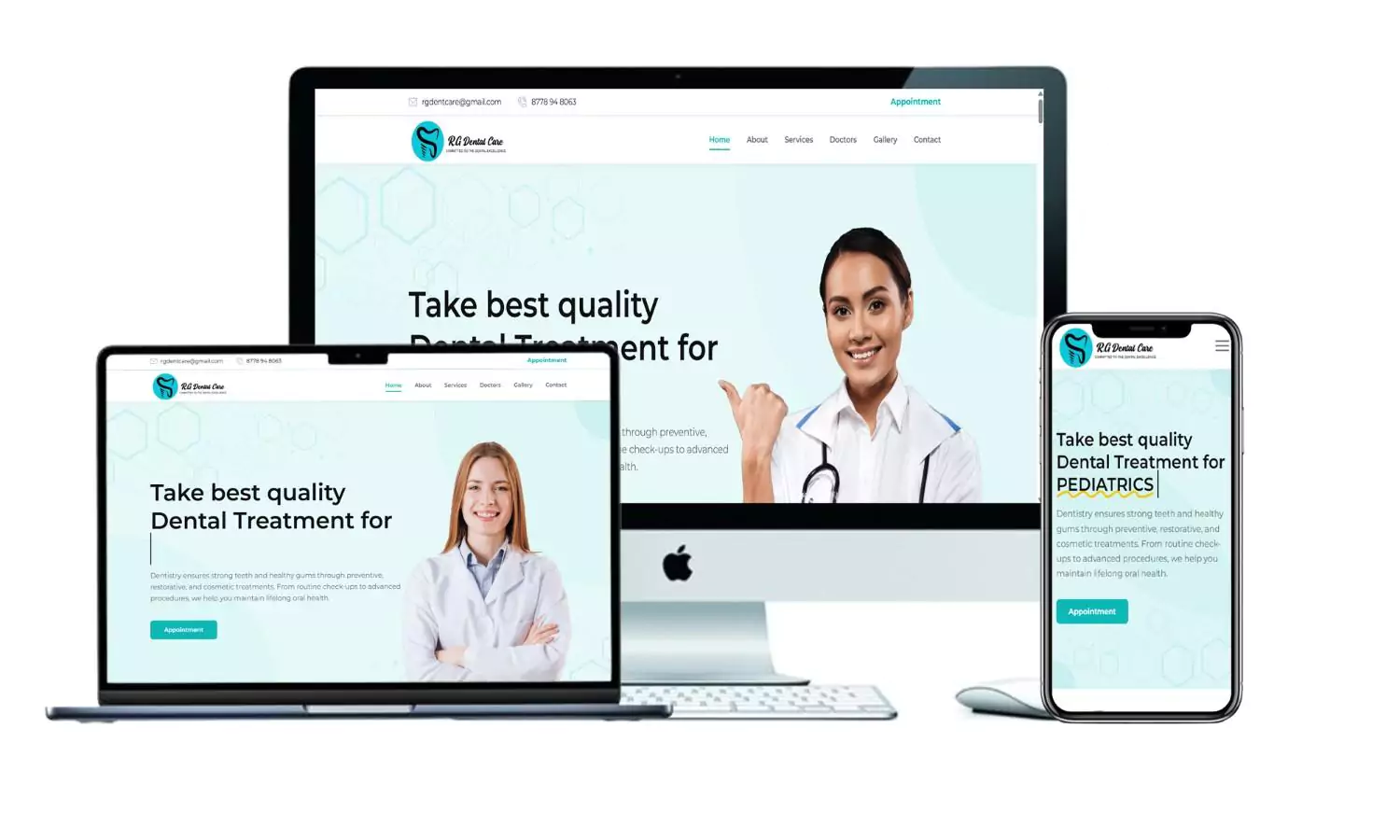 Our Solution : We developed a fully responsive and SEO-friendly web application for RG Dental Care, offering an interactive interface with clear service categorization, easy navigation, and appointment booking options. The website is mobile-optimized, ensuring a seamless experience for users across all devices. Additionally, SEO enhancements were applied to improve search rankings and online presence.